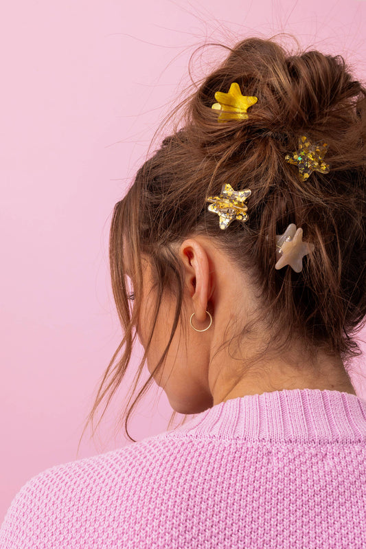 Mini Claw Hair Clips - Stars - Gold Confetti