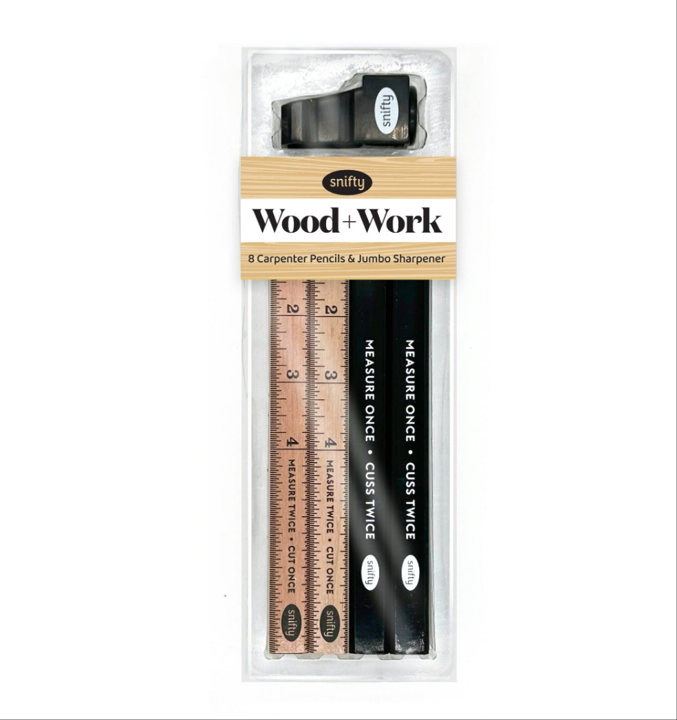 Wood + Work Carpenter pencil & sharpener set makes the perfect gift for dads, brothers, uncles … all those hard to shop for folks.