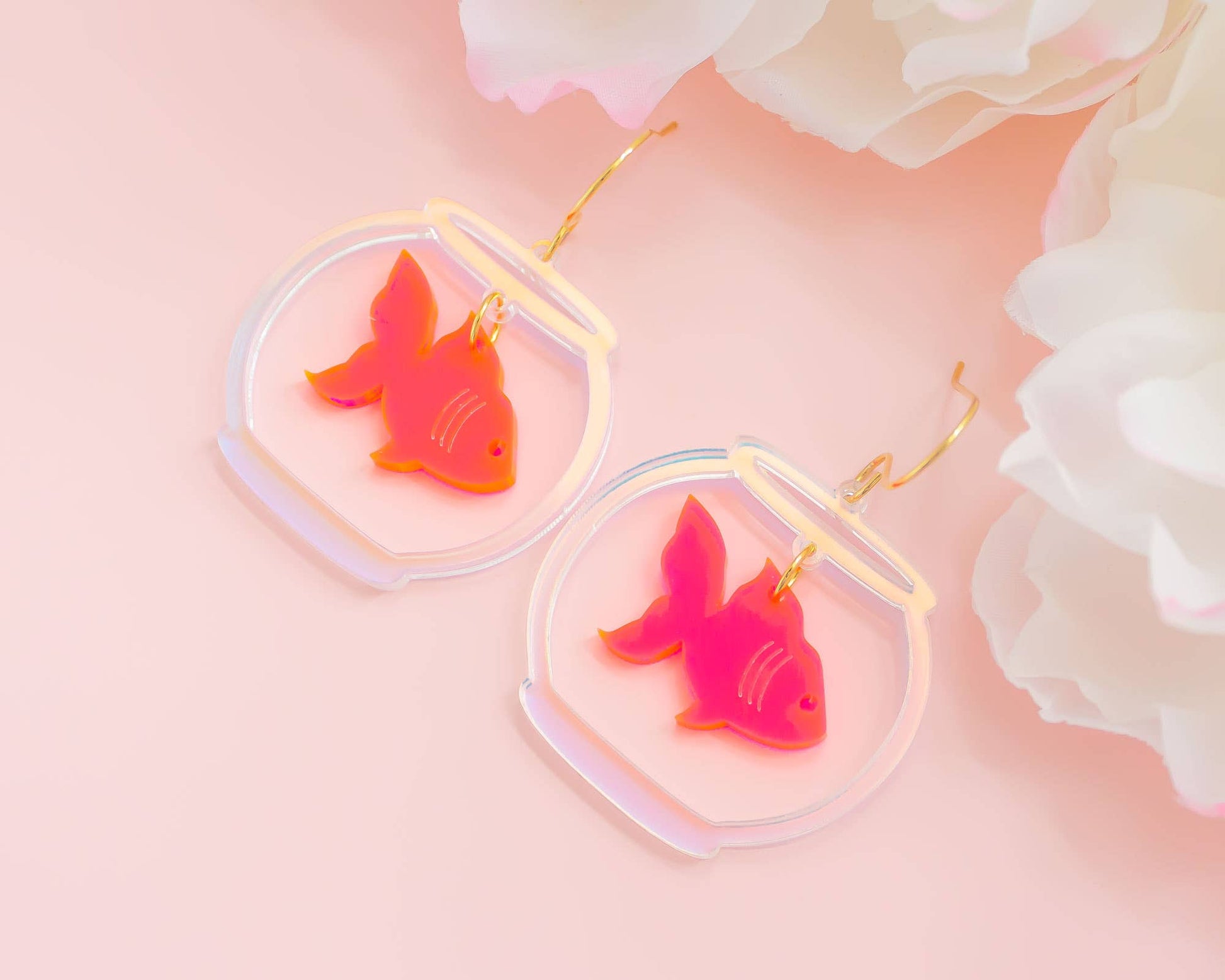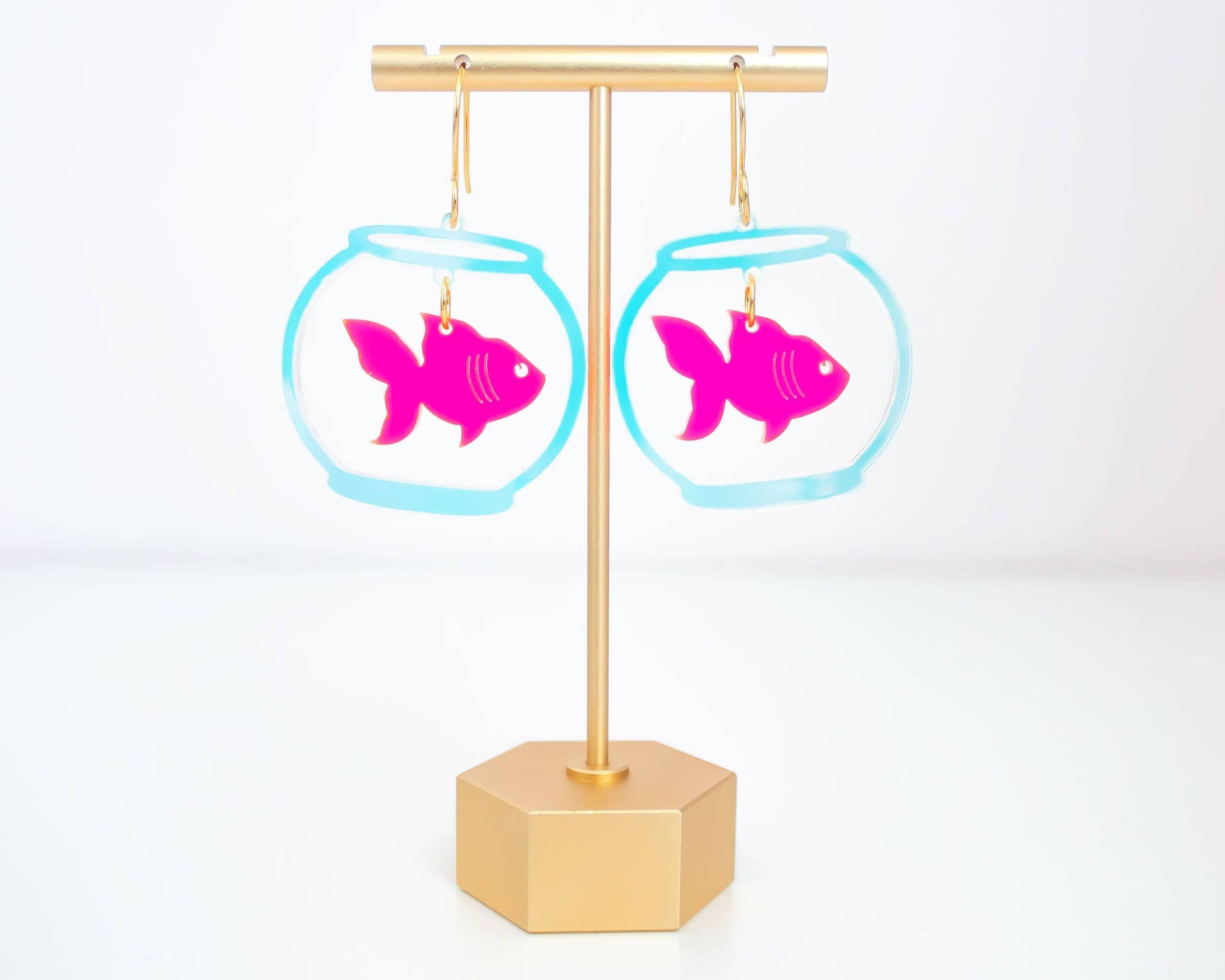Animal Earrings Fish Fishbowl Acrylic Handmade Earrings