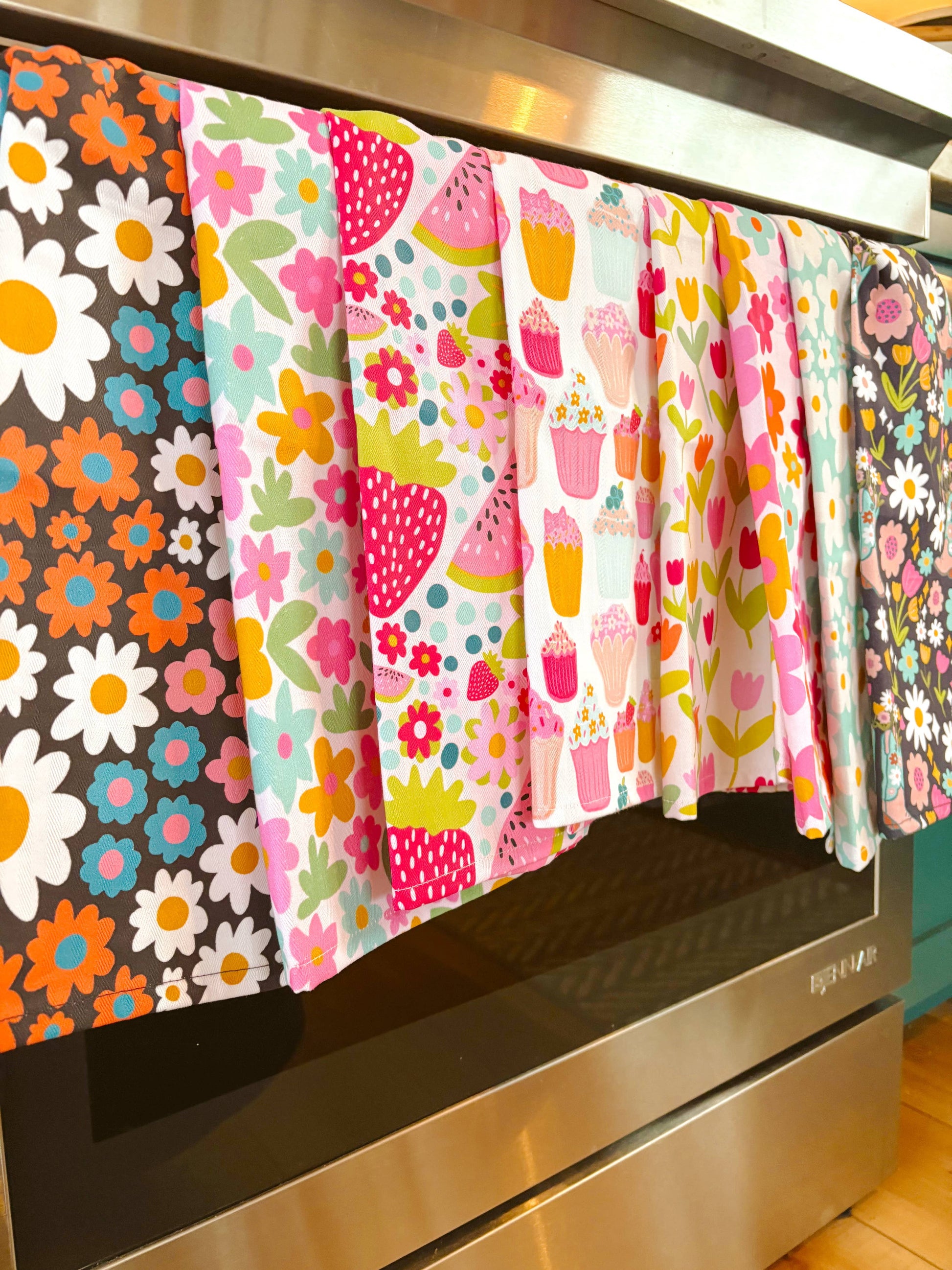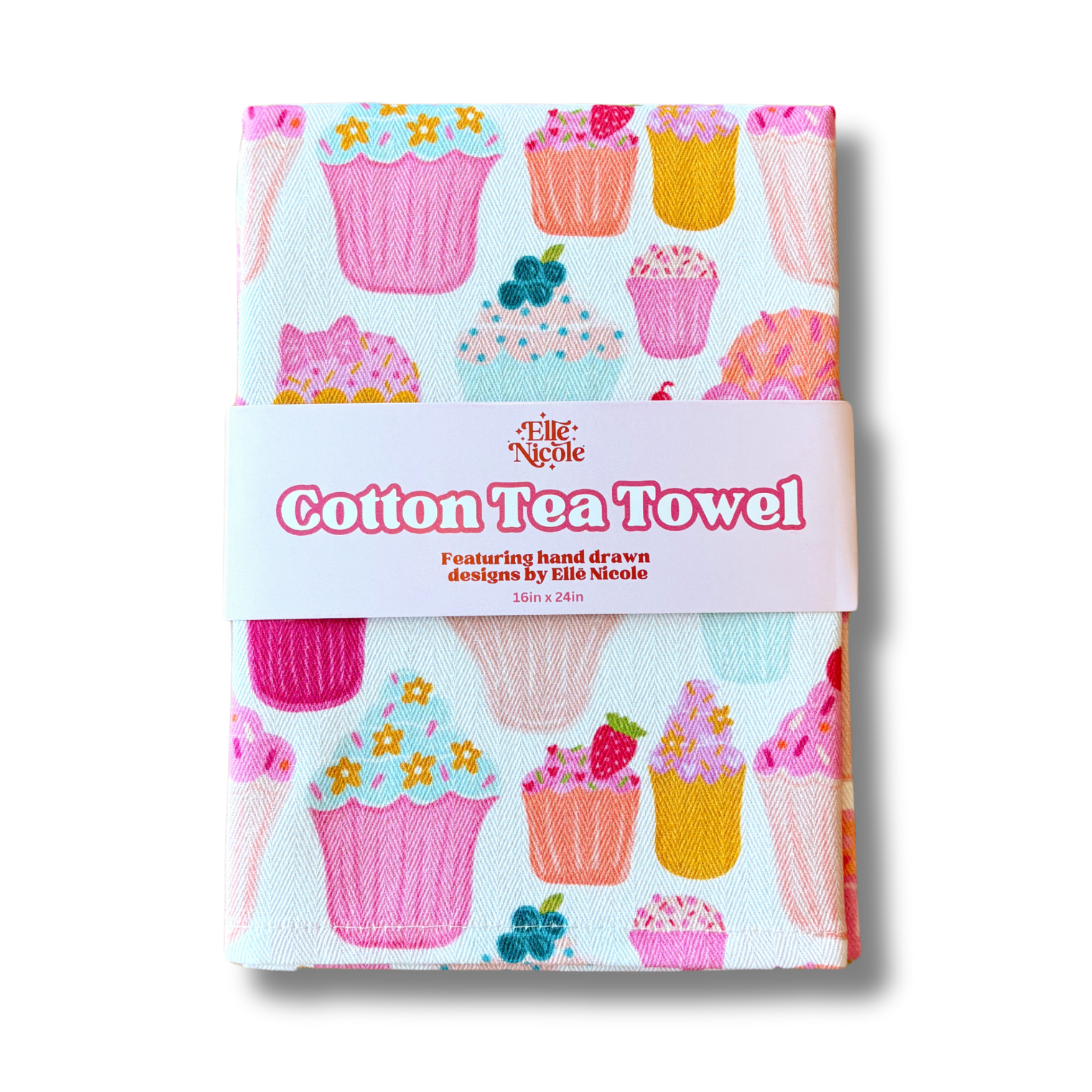 Spruce up your kitchen with our adorable 100% Cotton Tea Towel! Made with high-quality cotton and featuring hand-drawn designs by Ellē Nicole, these towels measure 16 x 24 inches and add a touch of charm to any kitchen. So cute and fun, these tea towels are a must-have for any home cook or foodie. Great gifts for a loved one or friend. They feature a nice fabric loop that makes them perfect for hanging up + these are printed with new vibrant and durable prints that are sure to hold up great in the wash!