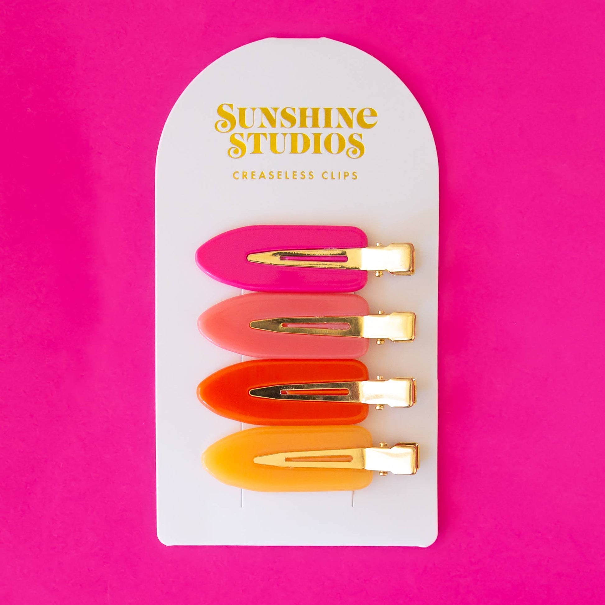 Sunshine Studios Eco-Friendly Creaseless Clips are a make-up lovers's must-have. Made with plant based materials, these clips are kind on your hair & the environment. Securely hold hair sections out of the way during make up application. Easily remove without leaving a crease!