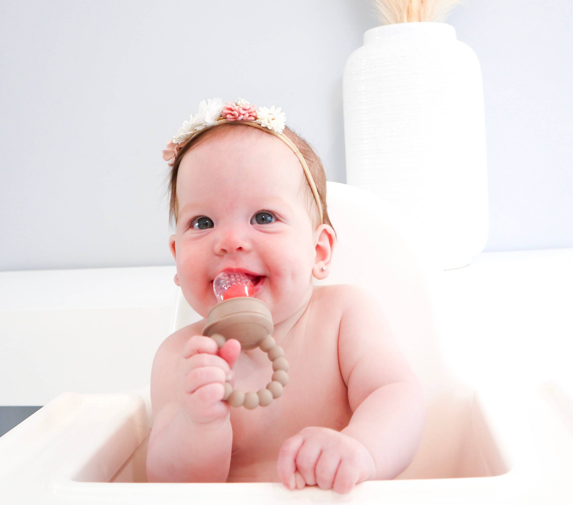 Our infant feeder for fruit, vegetables and liquids is the perfect way to introduce your baby to solid foods. It can also be used as a teether to soothe sore gums while learning to self feed and experience new flavours. A great alternative to an infant mesh feeder; our feeder is made from 100% food grade silicone making it safe, easy to clean and dishwasher friendly. Add the silicone cover over the pouch to freeze breast milk, formula or other liquids.