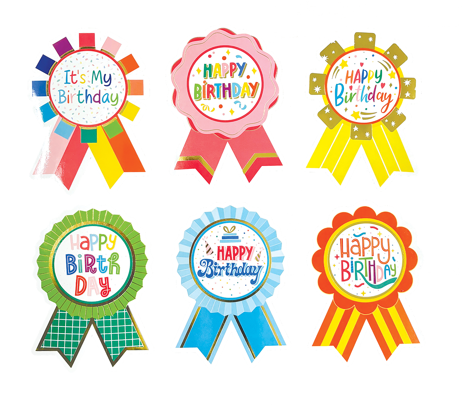 Happy Birthday Sticker Badges Set of 6
