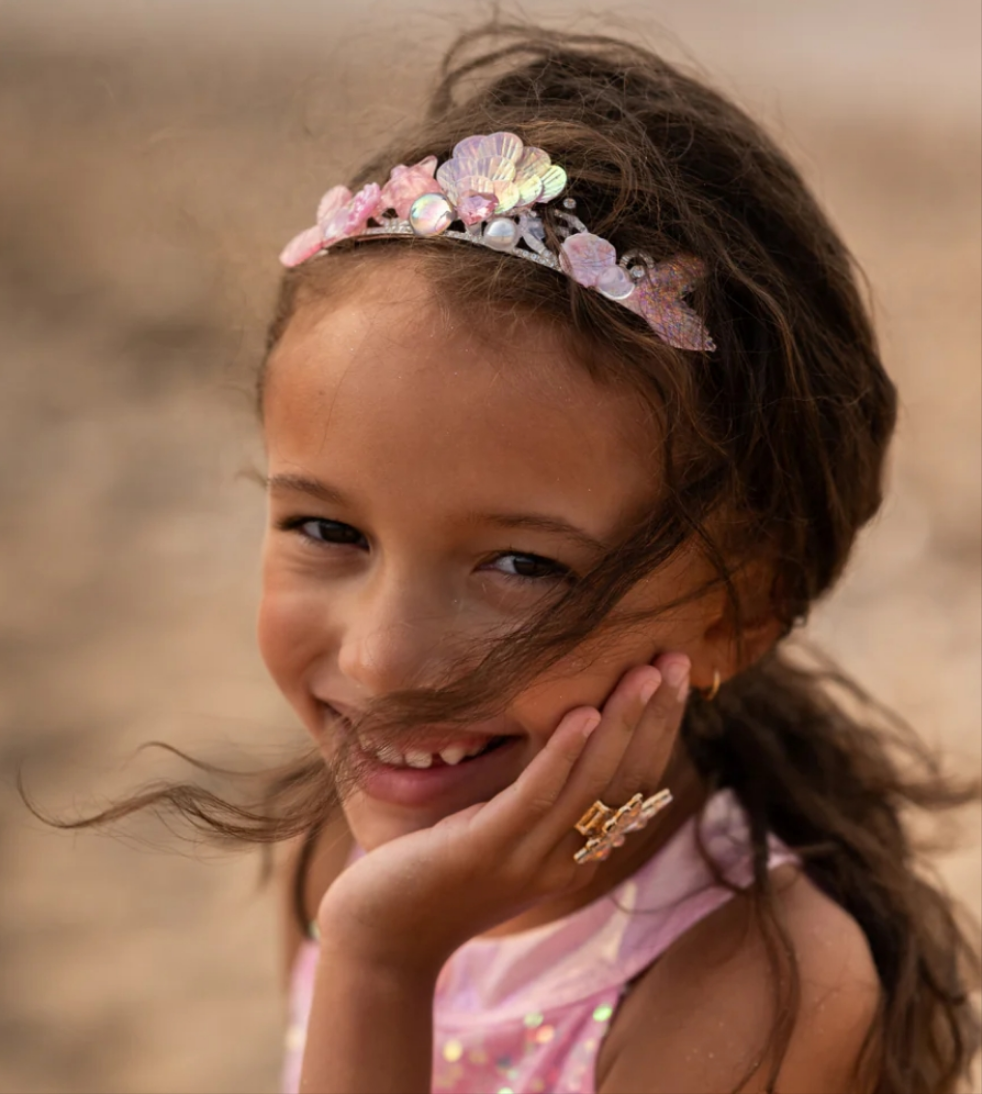 Crown your little mermaid with the magic of the sea with the Boutique Ocean Jewel Tiara! Each shimmering tiara is adorned with sparkling jewels that capture the beauty of the ocean. Perfect for turning any moment into a royal affair, these tiaras add a touch of enchantment to dress-up fun and special occasions alike.