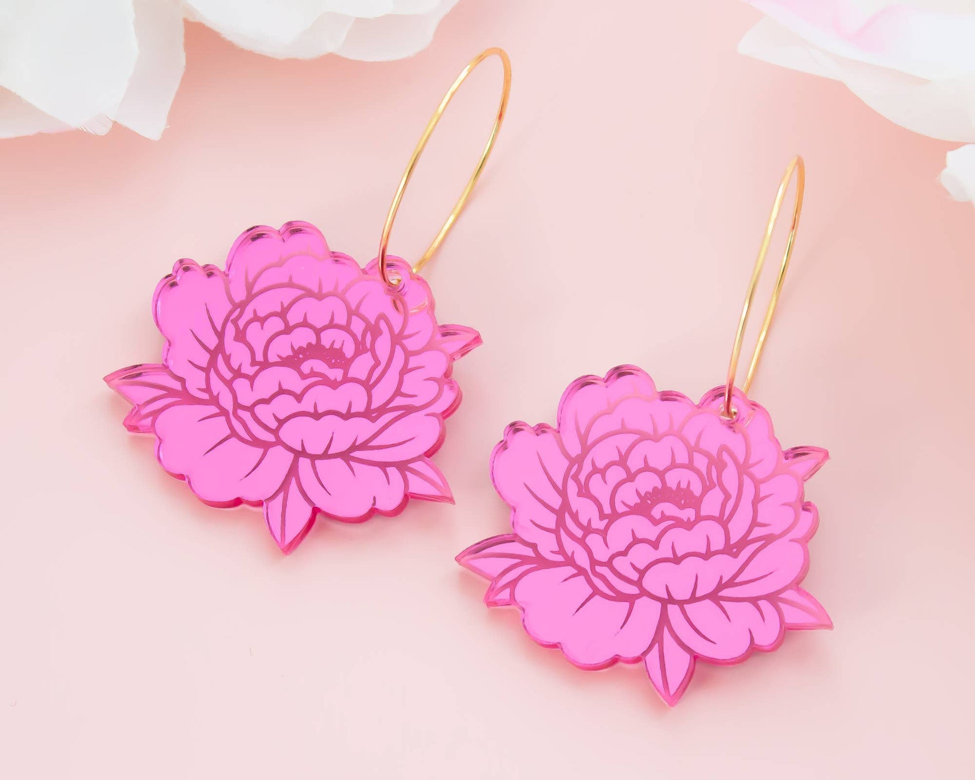 Neon Earrings, Spring Earrings, Summer Earrings, Summer Jewelry, Floral Earrings, Peony Jewelry