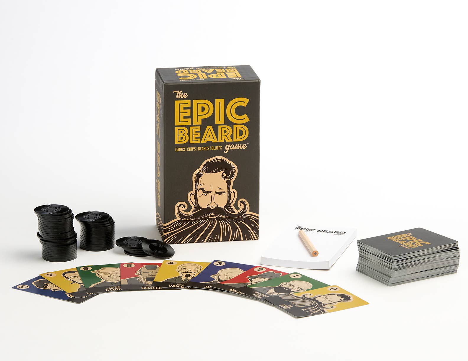 The EPIC BEARD Game™ is a classic card game with a shot of bald-faced bluffing and a twist of hirsute humor!