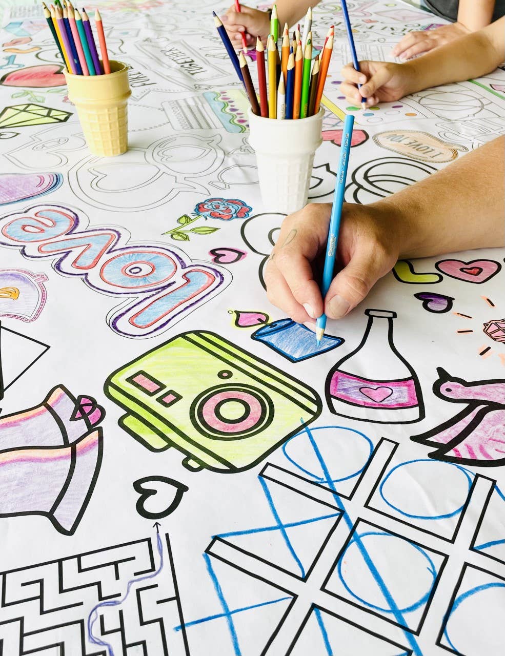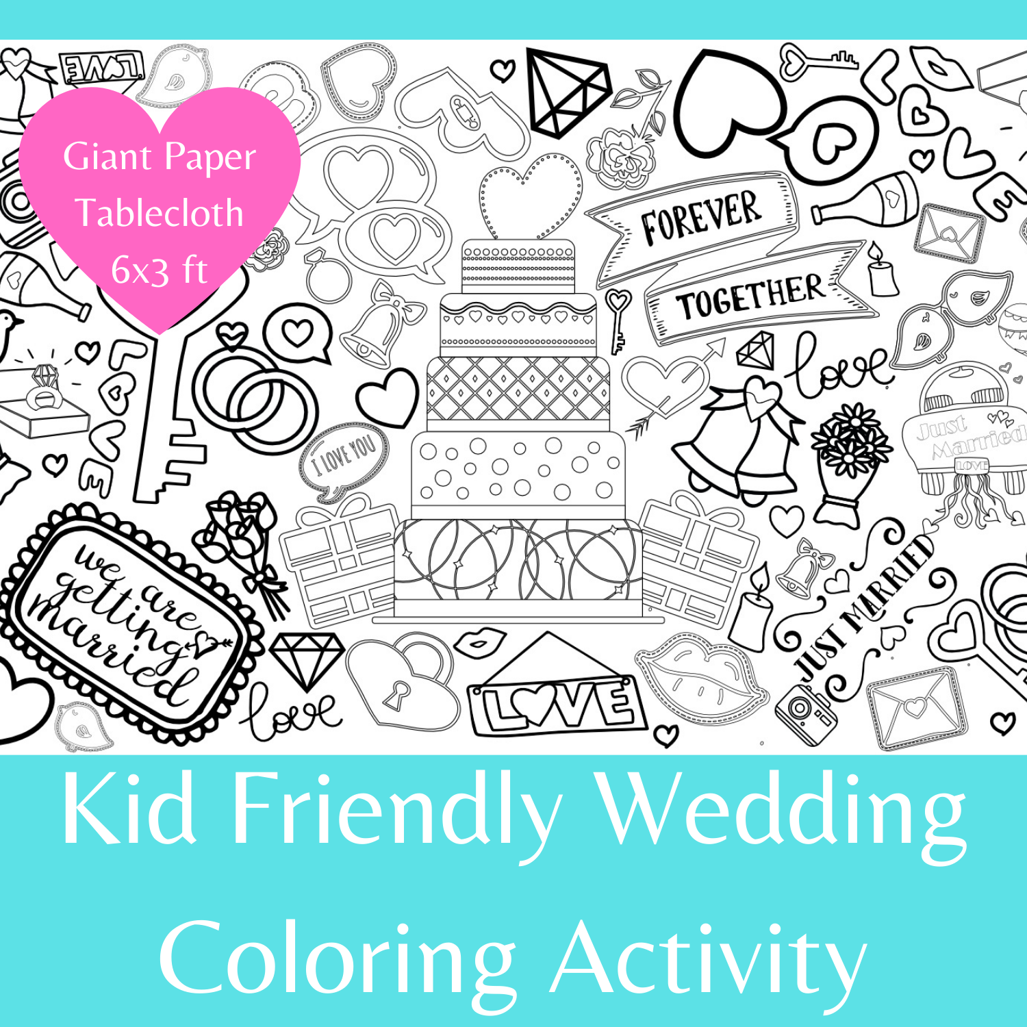 Use as a themed table cover or even hang as a banner or poster! From the flower girl to the ring bearer, this kids table coloring station will be a place the kids won't want to leave!